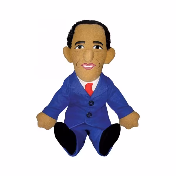 Äg din egen docka av Amerikas första färgade president, Barack Obama. Han satt som president från 2009 till 2017 som demokrat och lämnade posten enligt många med goda betyg för sin insats. Nu kan du äga snubben och ha hemma som påminnelse att USA lyckas skaka fram en skaplig president lite då och då. Dockan mäter ca 31 cm i höjd och är tillverkad med detaljrikedom.